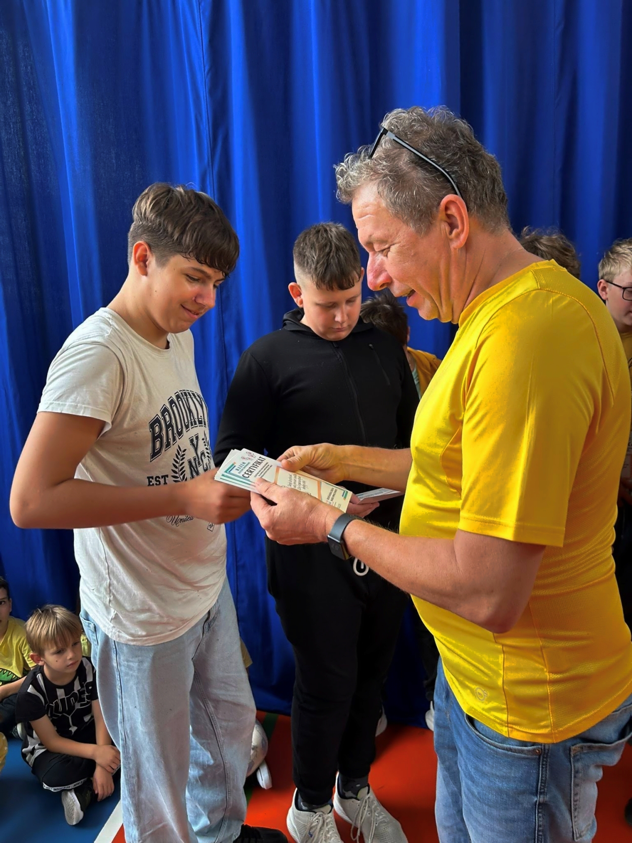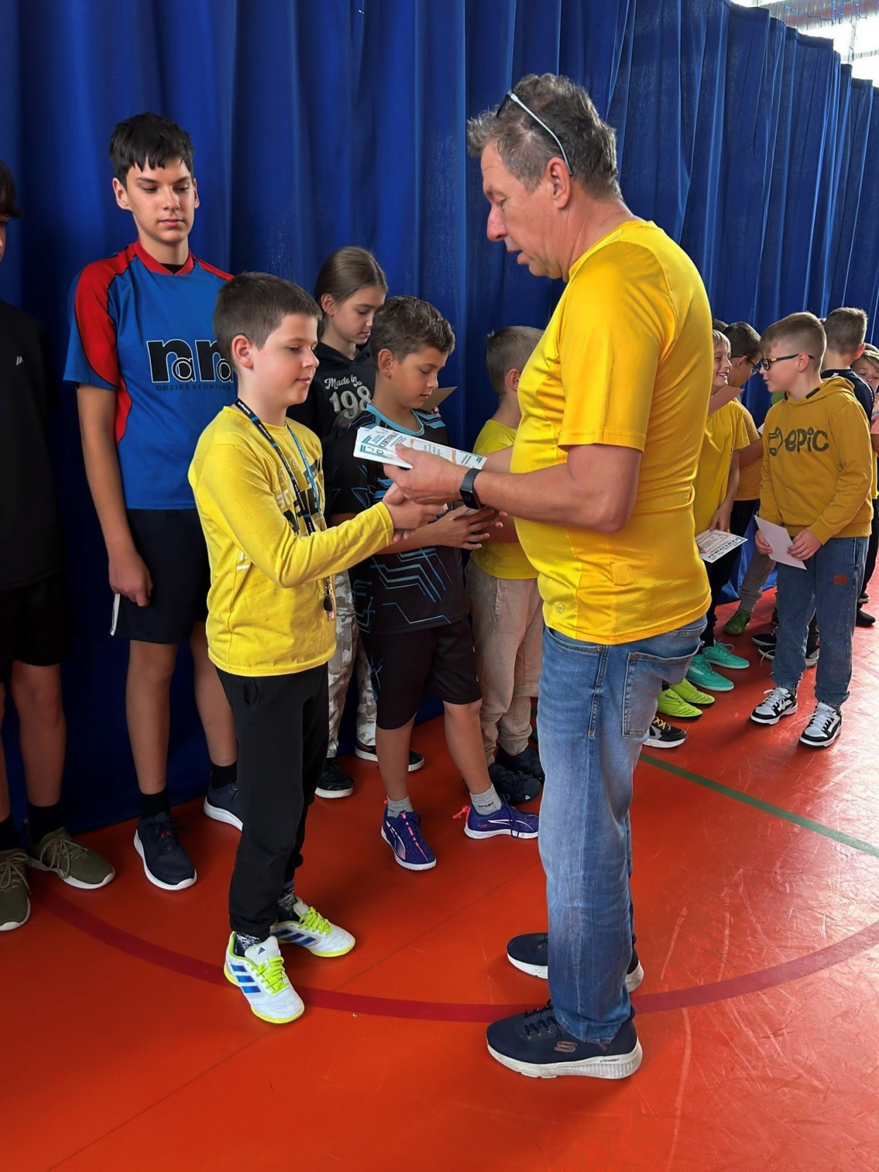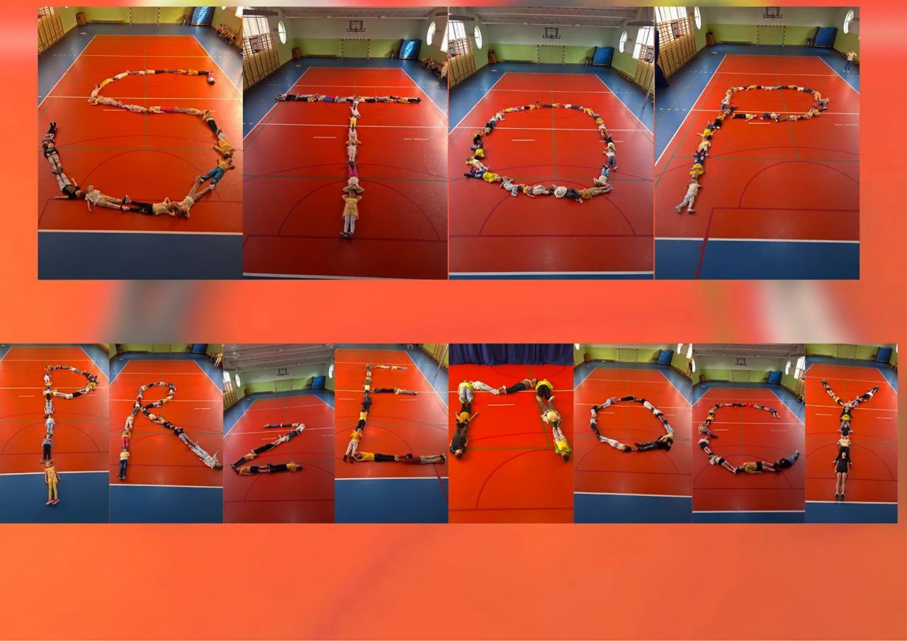 To już kolejny dzień, kiedy cała społeczność szkolna zjednoczyła się we wspólnym działaniu, którego motywem przewodnim był kolor żółty – symbol nadziei i pozytywnej energii. Do szkoły wchodziliśmy tanecznym krokiem, podkreślając radość oraz wspólnotowy charakter wydarzenia. W ciągu dnia uczniowie angażowali się w przygotowanie plakatów konkursowych poświęconych przeciwdziałaniu przemocy. Szczególnym momentem było także stworzenie przez OP PP oraz klasy 1–8 wyjątkowego, symbolicznego napisu „STOP PRZEMOCY”, ułożonego z ludzkich sylwetek. Nie mogło zabraknąć również działań świetlicowych – tam odbył się pełen emocji dywanowy Turniej Cymbergaja, który dodatkowo zintegrował uczestników. Uczniowie, nauczyciele i wychowawcy pracowali na różnych poziomach, aby lepiej zrozumieć, czym jest przemoc, jak jej przeciwdziałać, a także by wypracować skuteczne sposoby zapobiegania jej przejawom. Dzięki aktywnościom podejmowanym w klasach, świetlicy i na forum całej szkoły wzmacniamy świadomość, że razem możemy więcej – wspólnie budujemy kulturę wzajemnego szacunku, życzliwości i wsparcia. To jednak nie był koniec dzisiejszych emocji. W ramach wyjątkowej akcji związanej ze zbieraniem komplementów z okazji Dnia Chłopaka – chłopcy ,którzy brali udział w biciu rekordu na największą ilość komplementów otrzymali dziś specjalny certyfikat „Razem jesteśmy niepokonani”. Ten symboliczny gest nie tylko podkreślił wartość życzliwych słów, ale także przypomniał, jak ważne jest wzajemne docenianie i wspieranie się. Certyfikaty stały się pięknym dopełnieniem całego dnia – pełnego uśmiechów, radości i solidarności szkolnej społeczności. Każdy kolejny dzień tego tygodnia przybliża nas do wielkiego piątkowego podsumowania, które będzie ukoronowaniem naszych starań i zaangażowania.